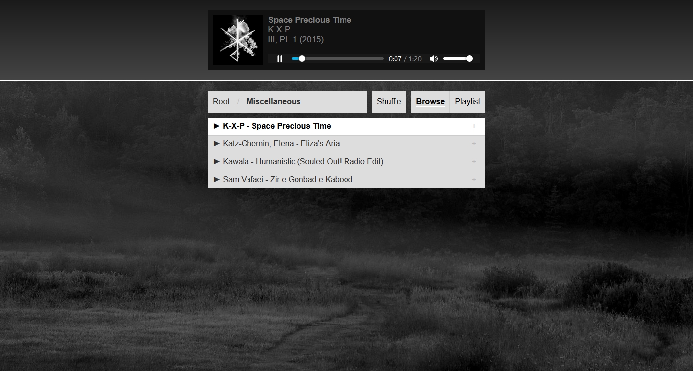 将 Noctifer Music 文件复制到音频库的根目录下(确保PHP 7或更高版本)。使用密码123,访问目录后,播放器会自动加载文件并开始播放。