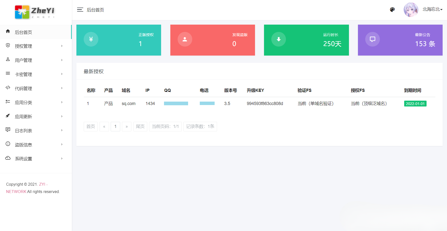ZYI PHP 授权系统(全开源):面向软件/站点发行的授权与防盗版管理方案,提供卡密授权、泛域名授权、IP 授权等多策略,支持在线更新与多应用版本管理,附升级日志与模板管理,便于品牌化与二次开发。