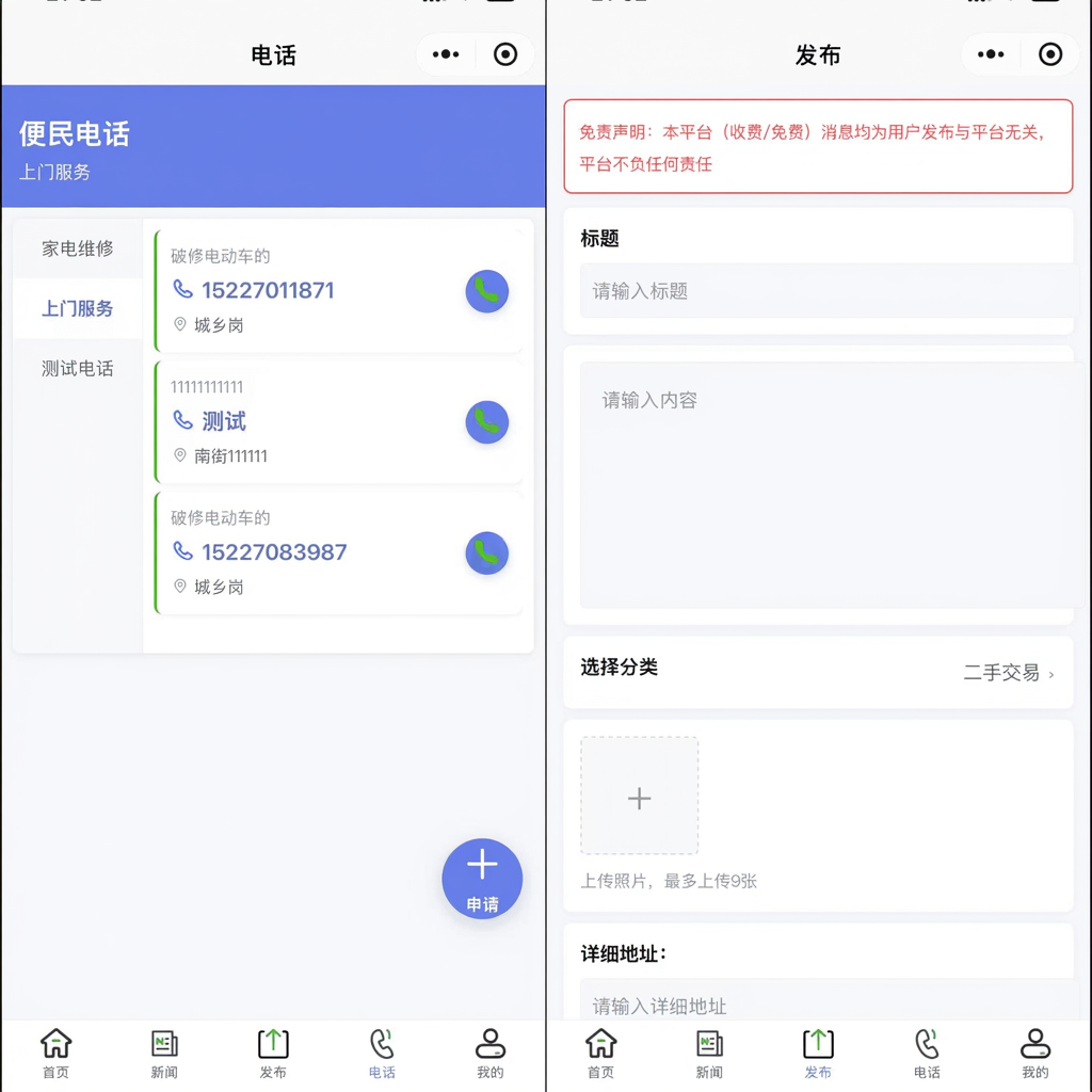 • 多端适配:同城信息一处发布,面向小程序/H5/App 多渠道触达用户。