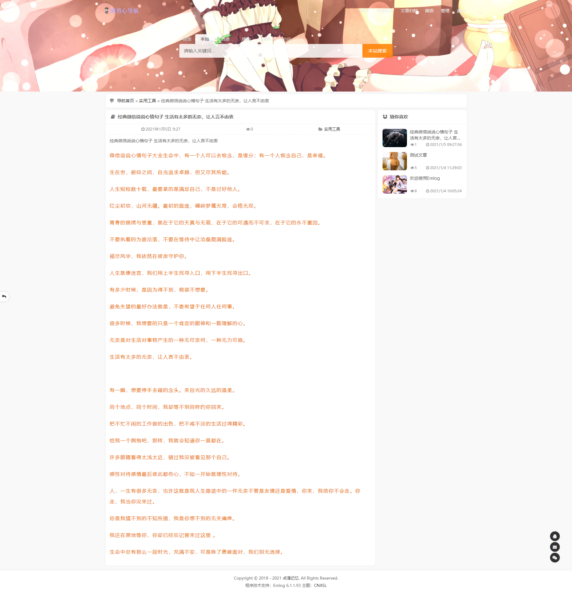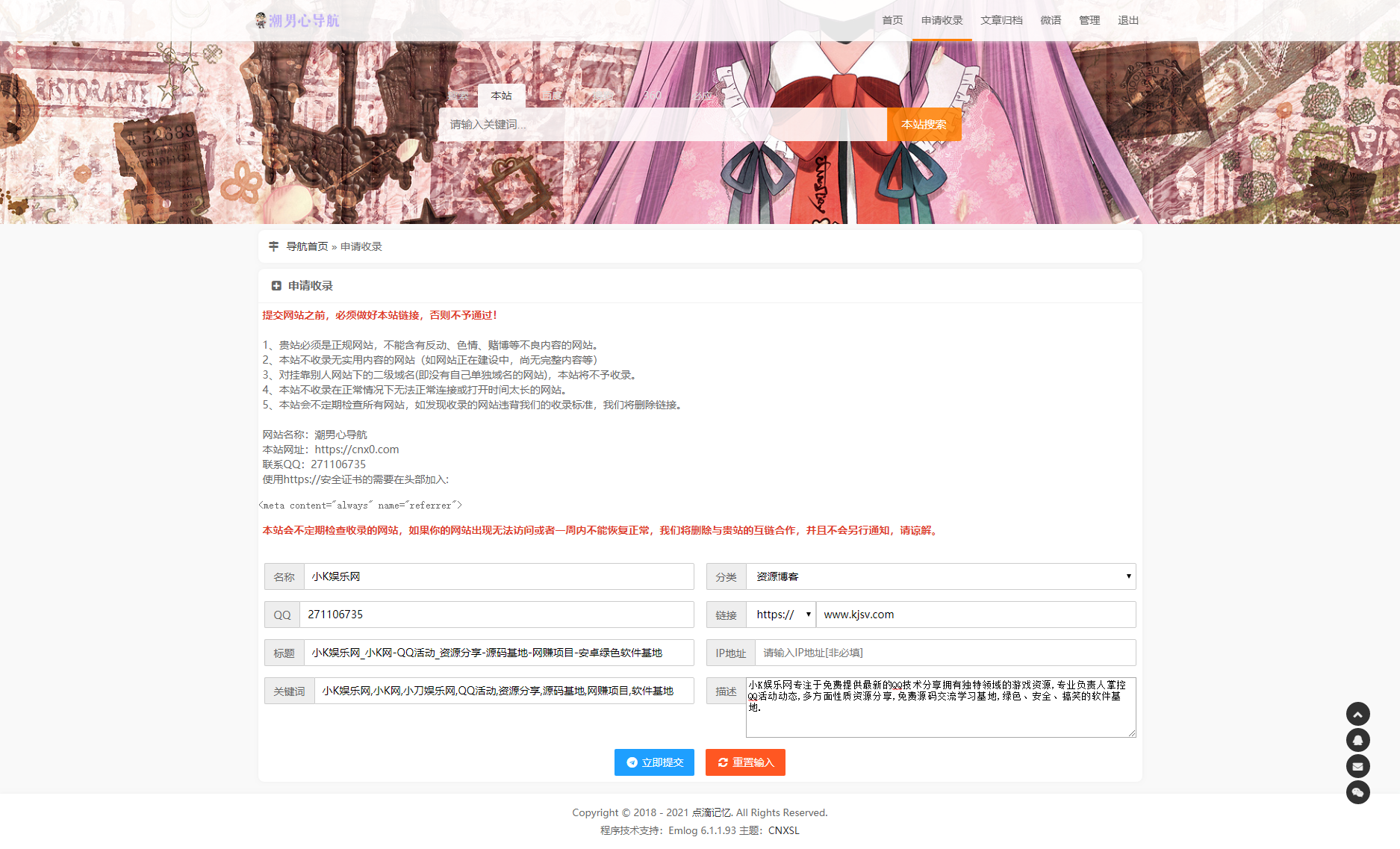 CNXSL emlog导航主题 收录网址与文章管理模板