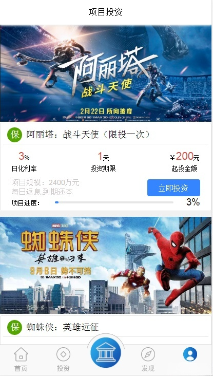- 多元化投资项目:系统预设了包括“每日返利”、“影视投资”在内的多种理财产品模型。管理员可自由创建不同周期、利率和起投金额的项目,满足用户差异化的风险偏好与收益期望。