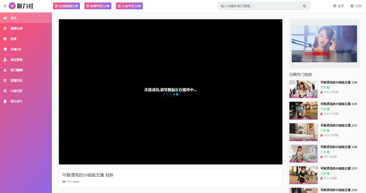 苹果CMS V10魅力社主题粉色美女视频网站源码