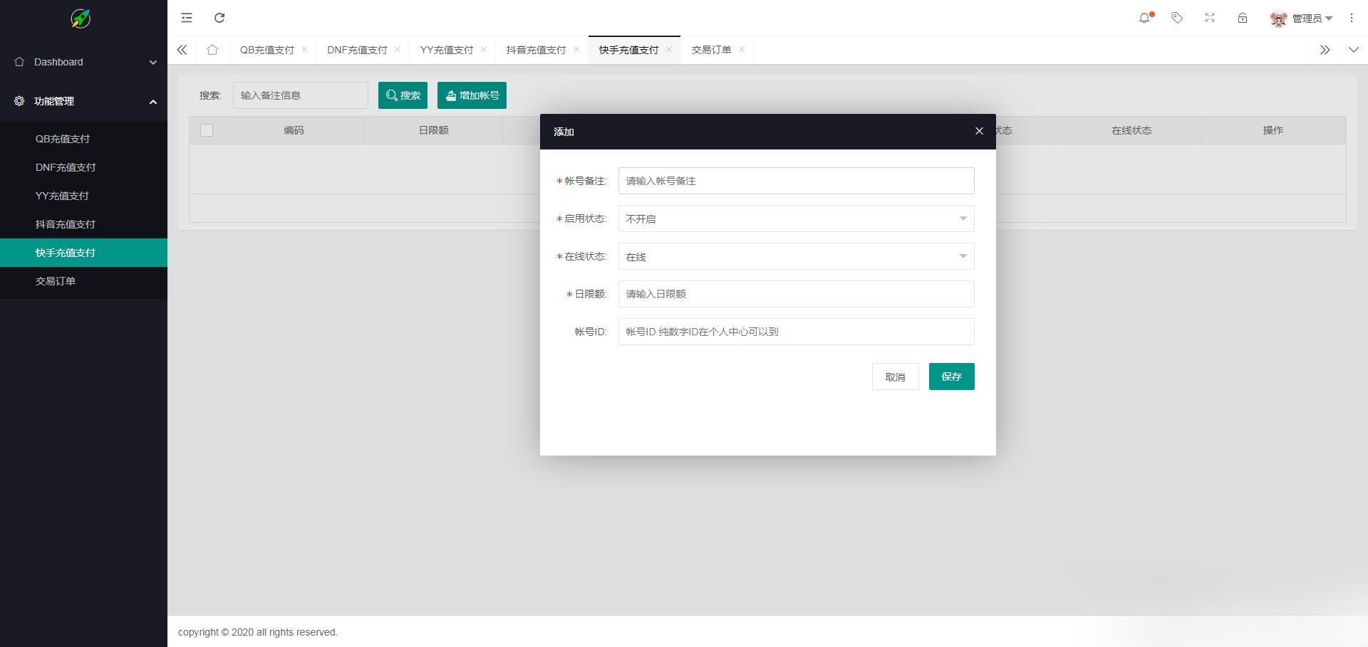• 后台管理配置:提供简洁的后台管理界面,支持支付通道开关、订单查询、数据统计等功能,便于运营人员实时监控与调整支付策略。