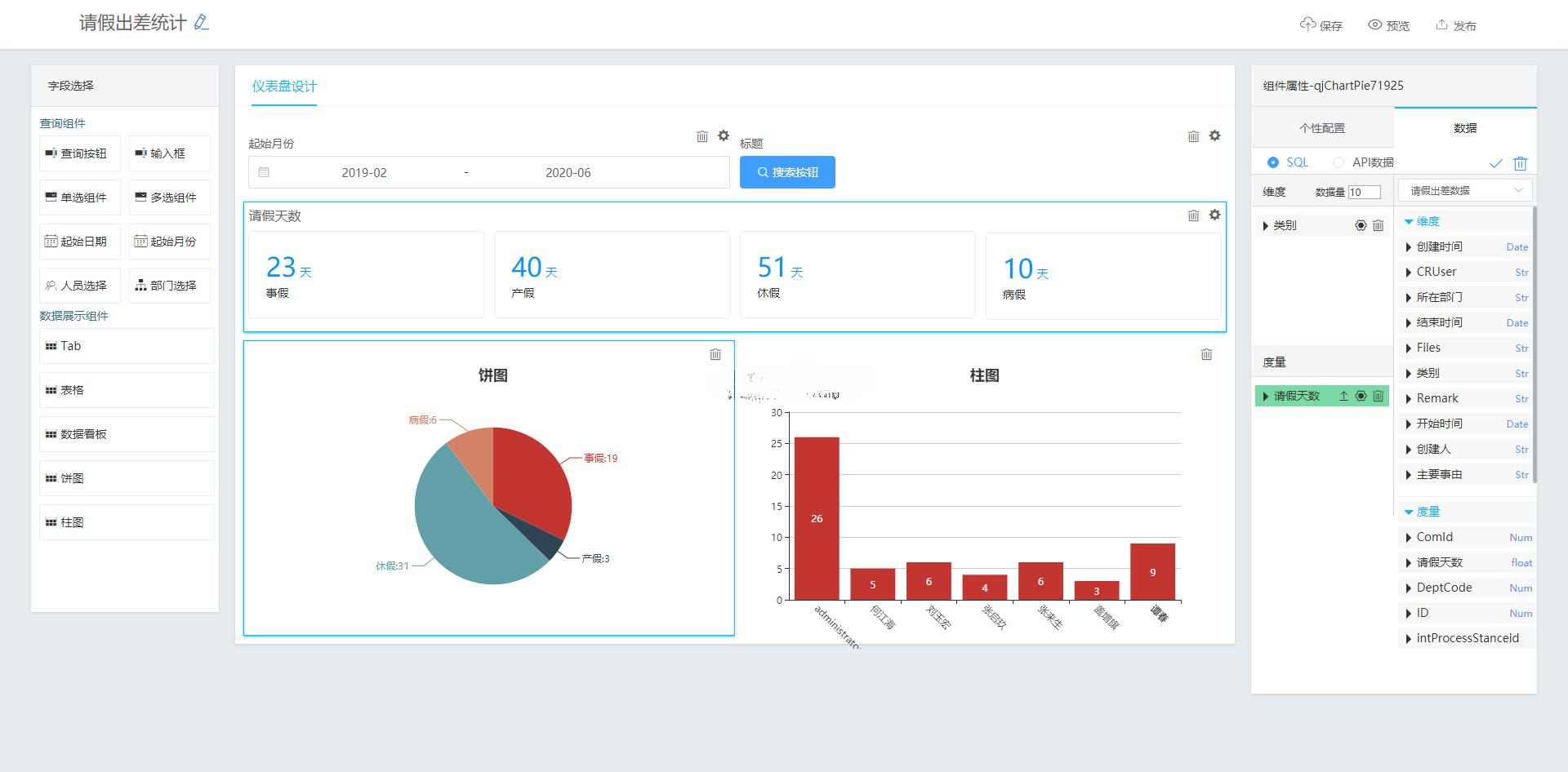 • 动态数据与API整合:仪表盘支持通过配置API接口,实时或定时拉取外部系统(如数据库、业务系统)的数据,打破信息孤岛,构建统一数据视图。数据过滤与组件联动功能使得动态数据展示更加灵活智能。