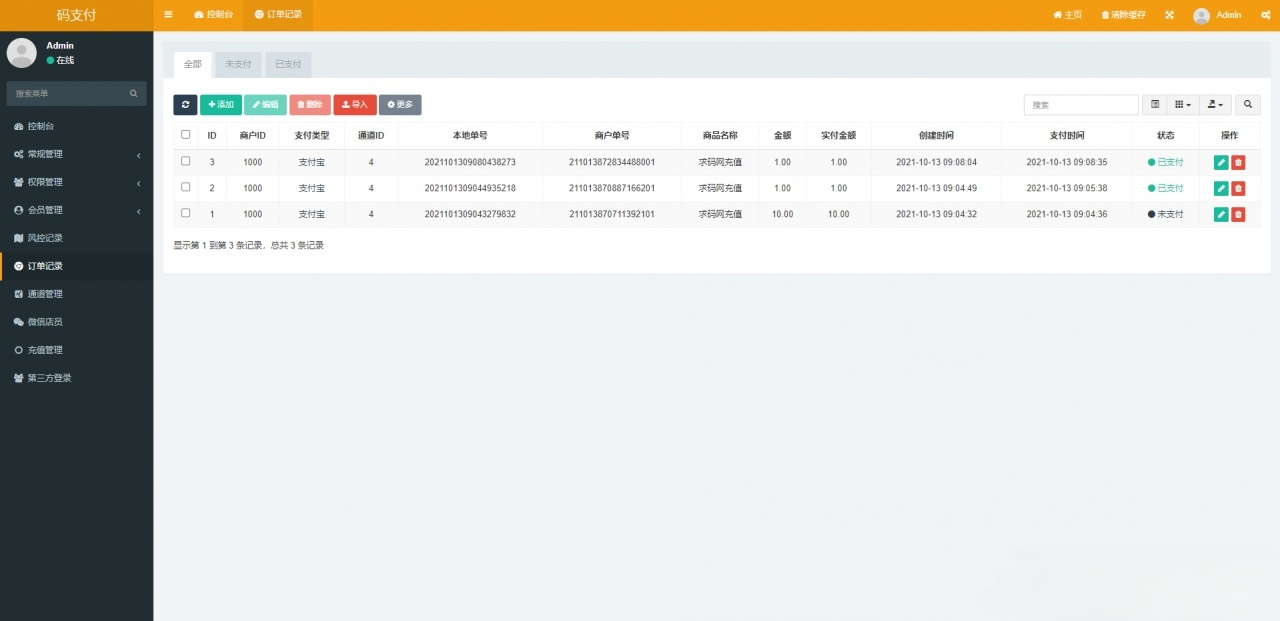 - 强大的后台管理系统:包含商户端管理、API文档、订单查询、数据统计等功能,提供完整的运营支持;系统优化了会员扣款模型验证,避免高并发下金额错误,保障交易安全。