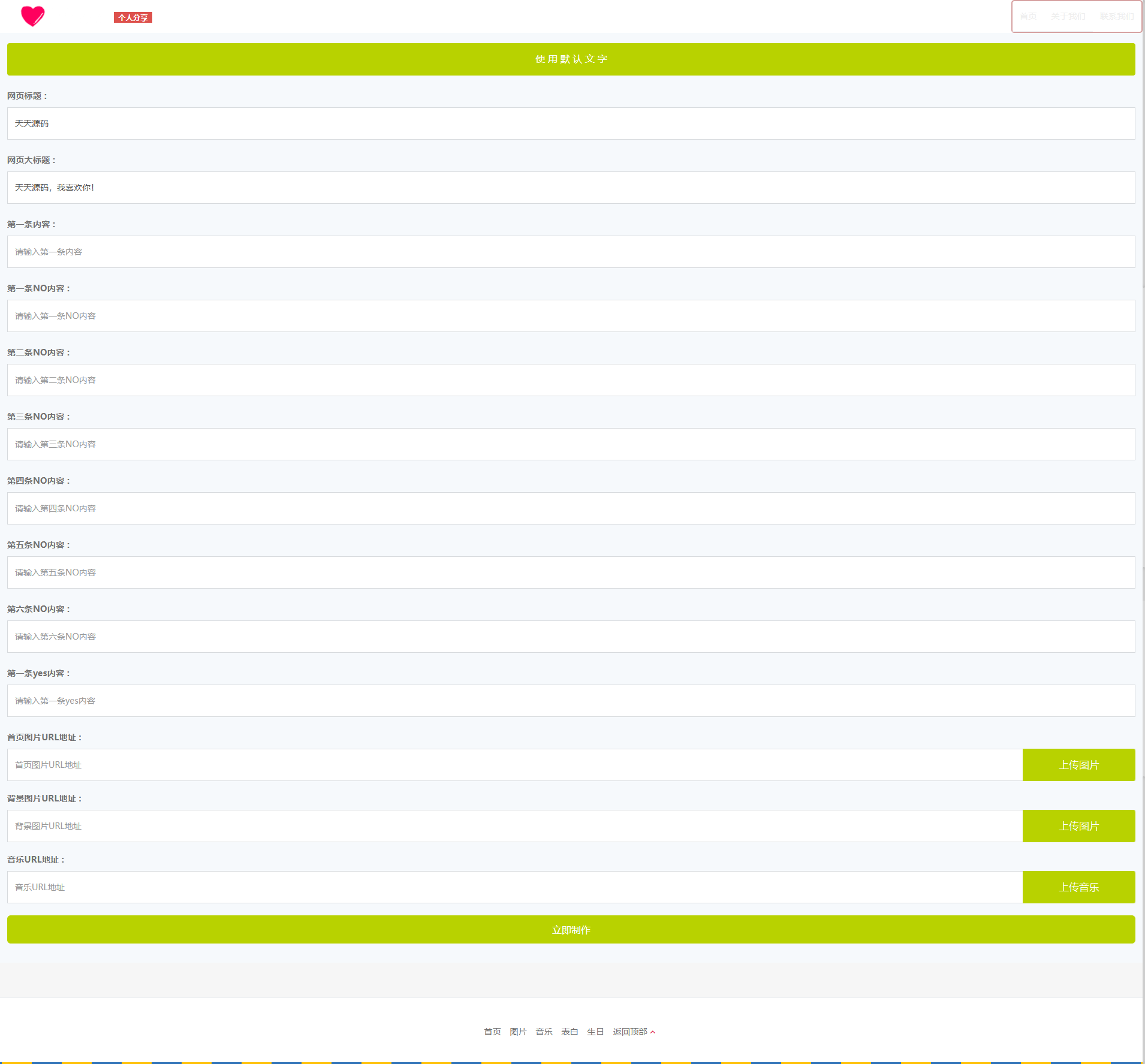 - 自动页面生成:用户只需在表单中输入姓名、情话、上传图片等基本信息,系统即可实时生成个性化表白页面,无需编写代码,大幅简化网页制作流程。
