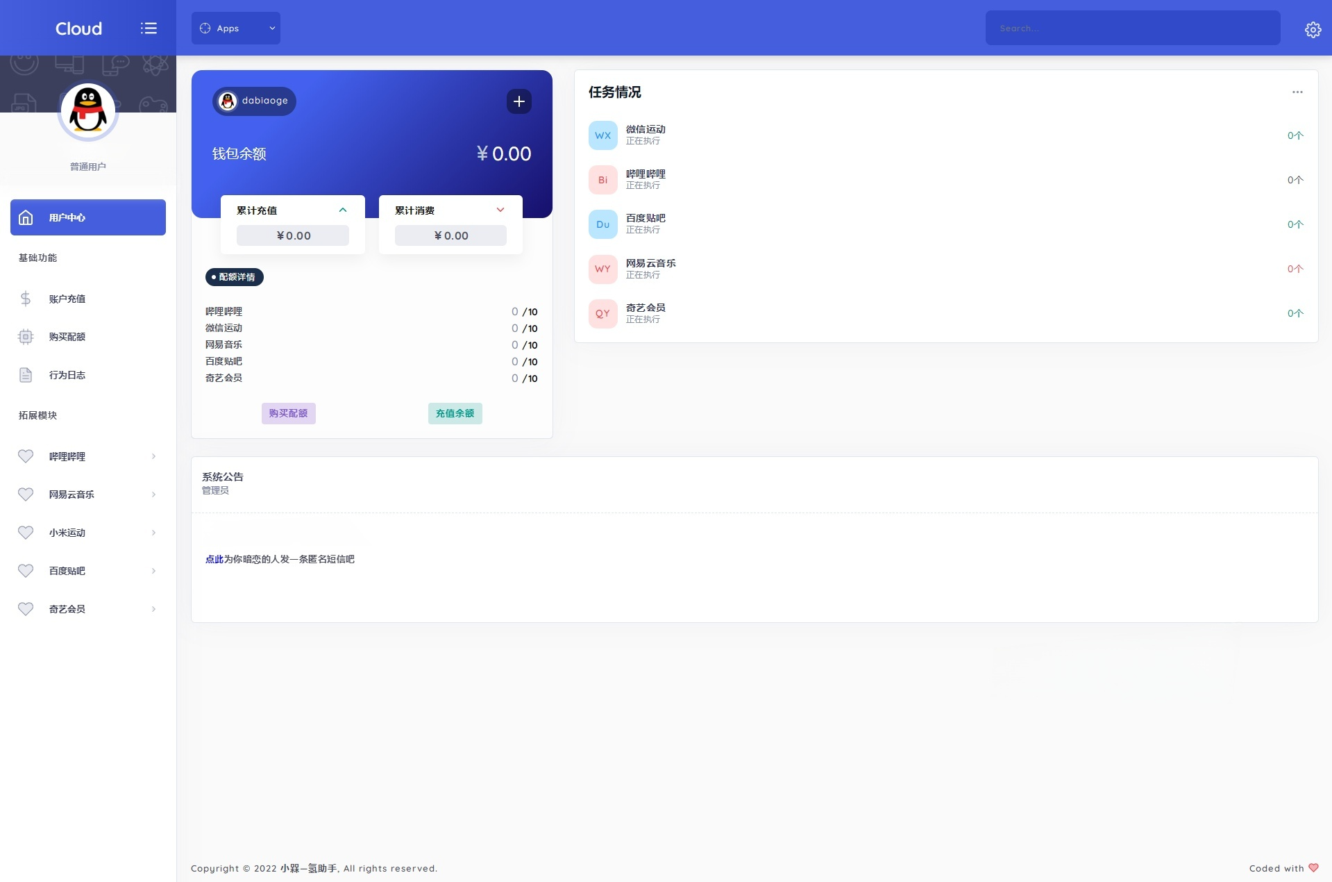 氢助手是一款基于PHP开发的开源云任务自动化系统,旨在帮助用户自动完成多个流行平台的日常任务,从而节省时间和提高效率。该系统由开发者云影合作创建,最初因被破解而停更,现全面开源,为技术爱好者和开发者提供了学习与二次开发的宝贵资源。云任务系统通过模拟用户操作,实现签到、打卡、互动等功能的自动化,适用于个人用户提升账号活跃度或企业进行批量运营。
