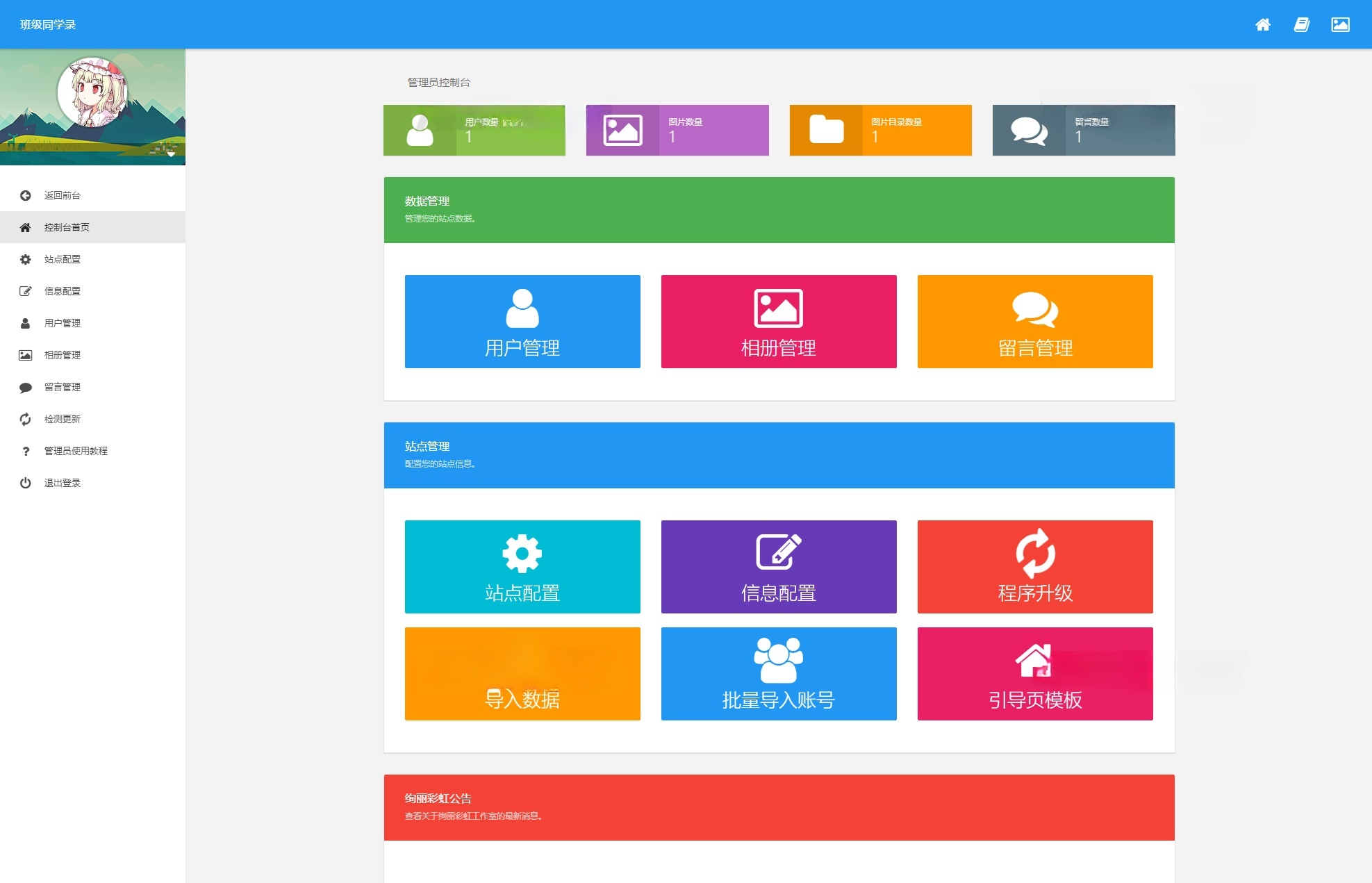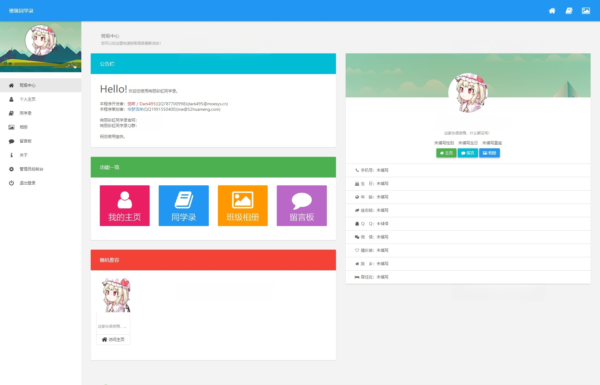 绚丽彩虹同学录是一款专为校园社交设计的开源电子同学录系统。在数字化时代,传统纸质同学录已逐渐被电子化替代,该系统应运而生,旨在为用户提供一个私密、高效、持久的在线同学录平台。通过该程序,用户可以轻松创建个人主页,记录同窗情谊,分享珍贵照片,并保持长期联系。