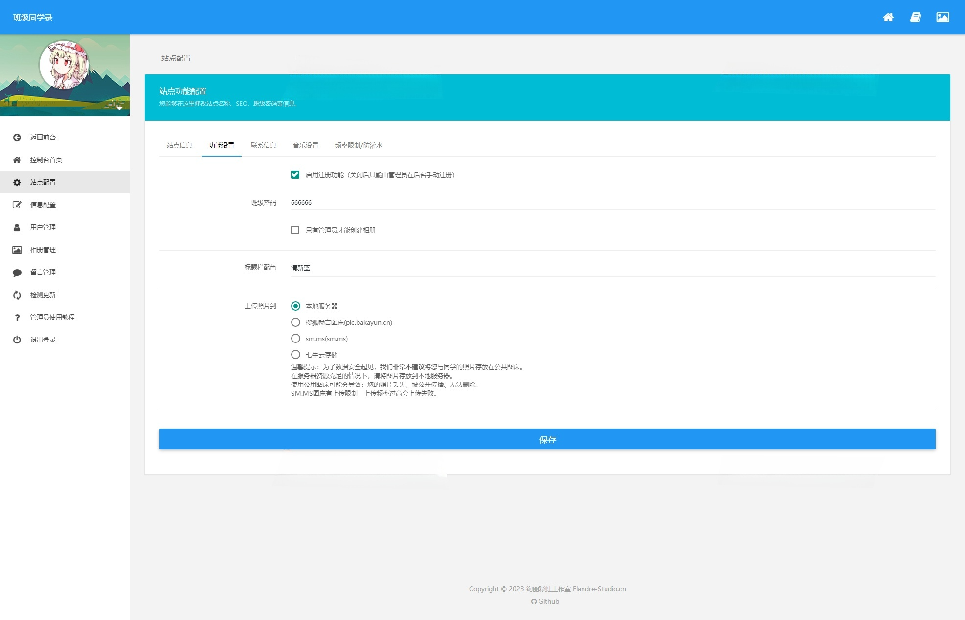 系统内置简洁的后台管理面板,管理员可以通过Web界面轻松管理用户、相册内容和留言板。功能包括用户权限设置、内容审核、系统配置调整以及数据备份。运营者可以监控访问日志,了解用户活跃度,并根据需求启用或禁用特定功能,实现灵活的站点管理。此外,提供数据统计报表,帮助分析用户行为,优化运营策略,确保系统长期稳定运行。