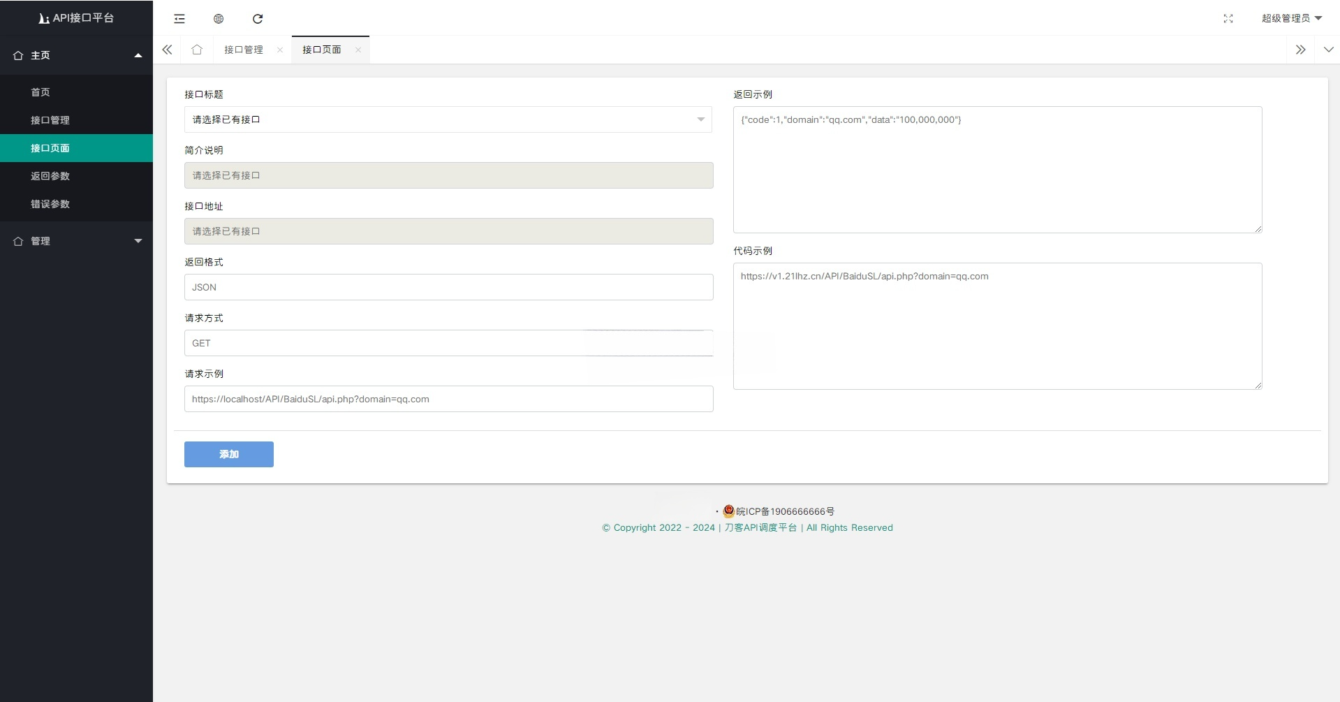 本次分享的是一套2024年全新开发的API接口调用管理系统网站源码。该系统采用经典的Layui作为前端框架,构建了简洁直观的管理界面,专注于对API接口进行统一的生命周期管理,包括接口的发布、调试、权限控制、调用监控与计费等核心功能。代码结构清晰,易于使用和进行二次开发,适合需要构建内部API网关、开放平台或进行接口运维管理的开发团队。