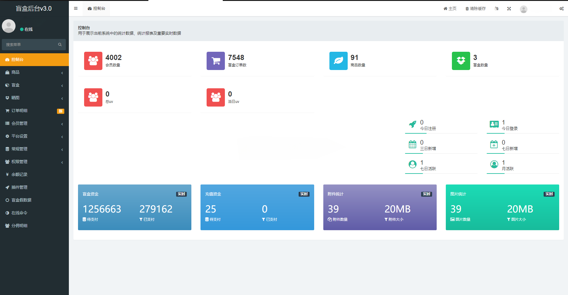 平台集成商品管理、订单处理、用户管理、支付接口等核心电商功能,支持盲盒玩法配置、概率设置、开盒动画等特色功能。代码结构清晰规范,便于二次开发与功能扩展,为盲盒电商运营提供全面的技术支撑。