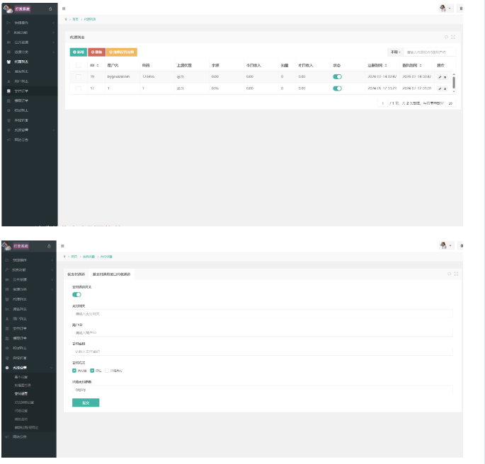 - 独立代理后台:内置代理管理后台,为代理/渠道提供独立登录入口,用于查看订单数据、推广情况等信息。