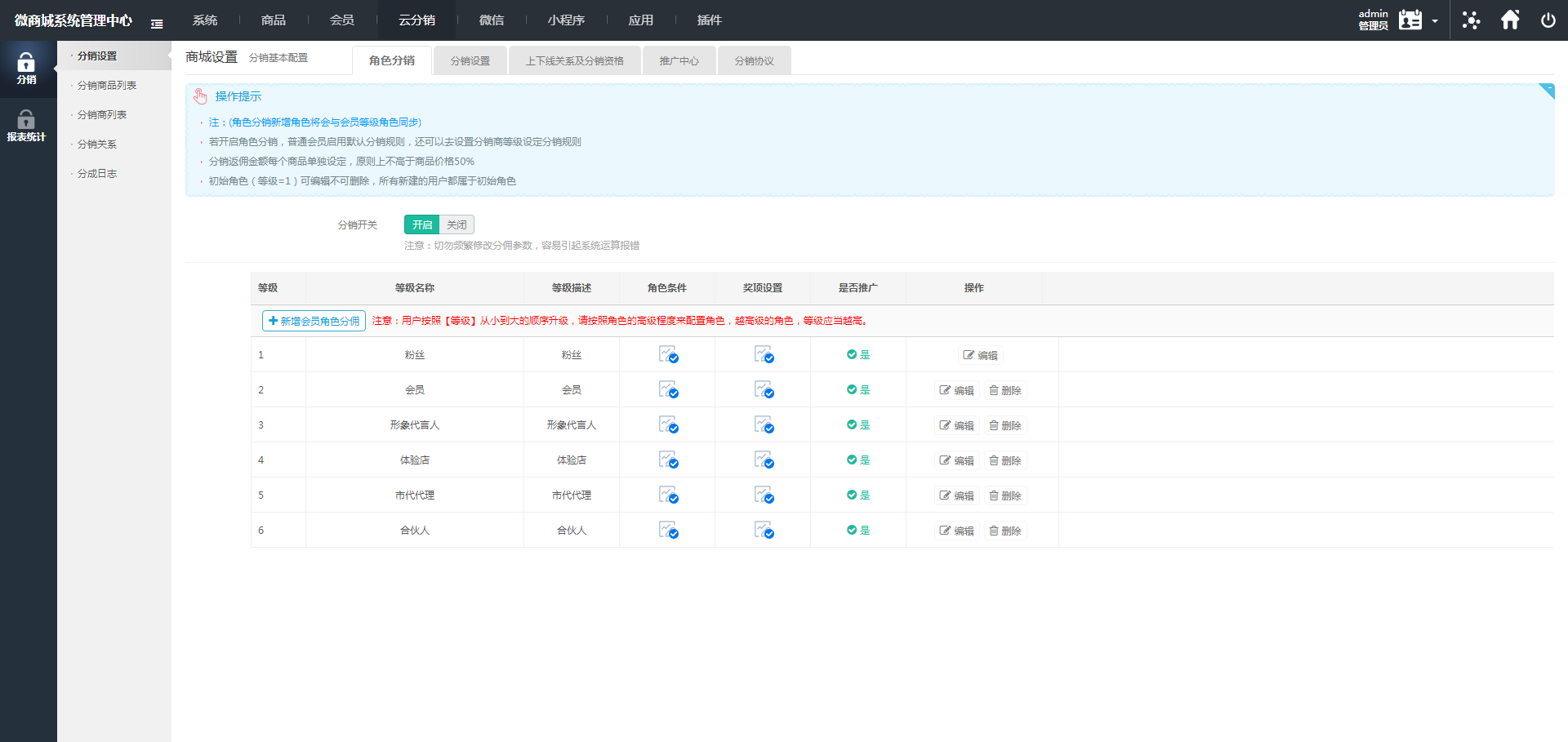 - 灵活升级条件:支持购买指定商品或消费额度等多种升级条件,提升代理商活跃度。